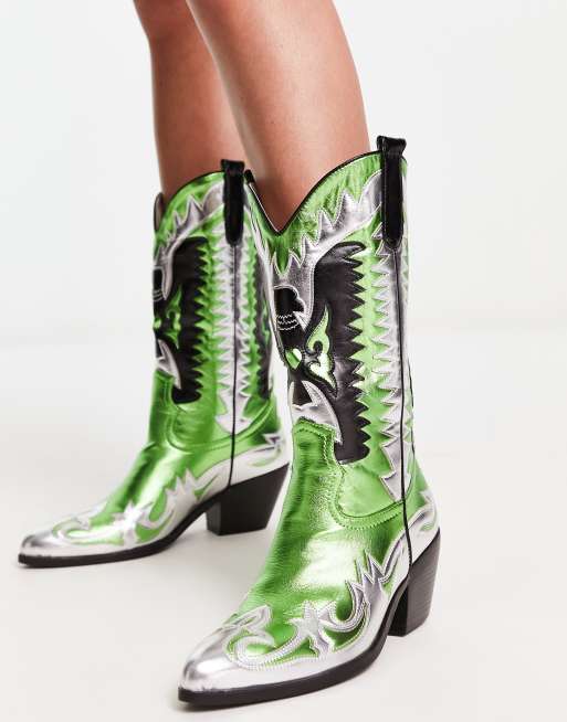 Azalea Wang - Way - Grønne og multifarvede cowboystøvler