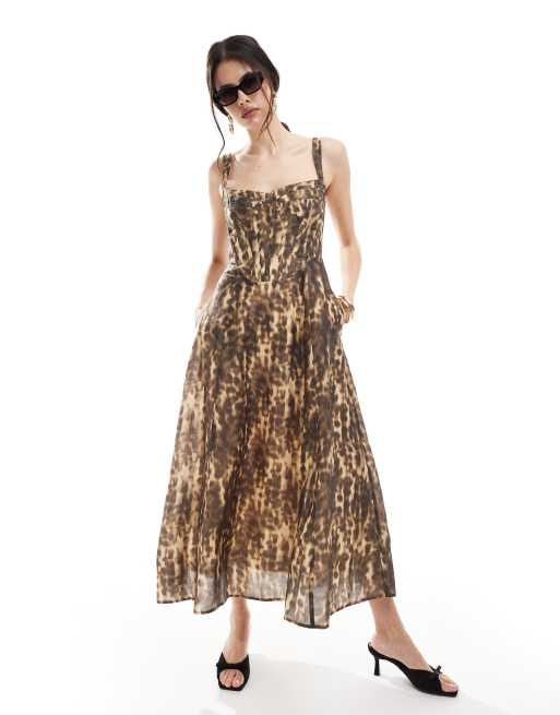 Bardot - Skater-midikjole med korsetdetaljer og leopardprint