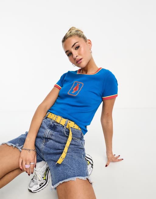 Basic Pleasure Mode - She Devil - Krympet blå T-shirt med kontrastkanter