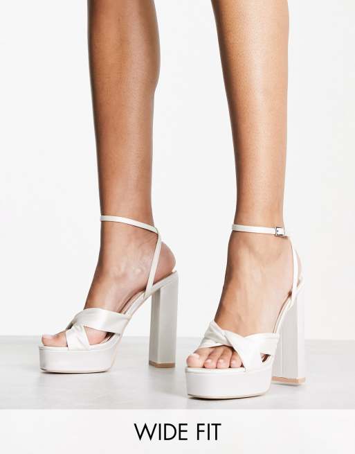 Be Mine Wide Fit - Margot - Elfenbensfarvede sandaler med plateauhæl i satin