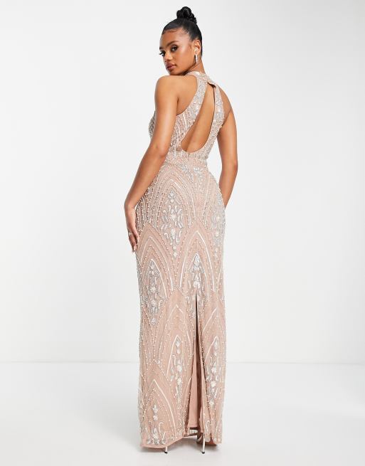 Beauut - Brudepiger - Brungrå maxikjole med gennemgående udsmykning