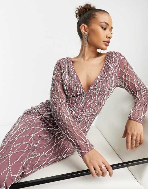 Beauut - Brudepiger - Gråbrun maxikjole med gennemgående udsmykninger