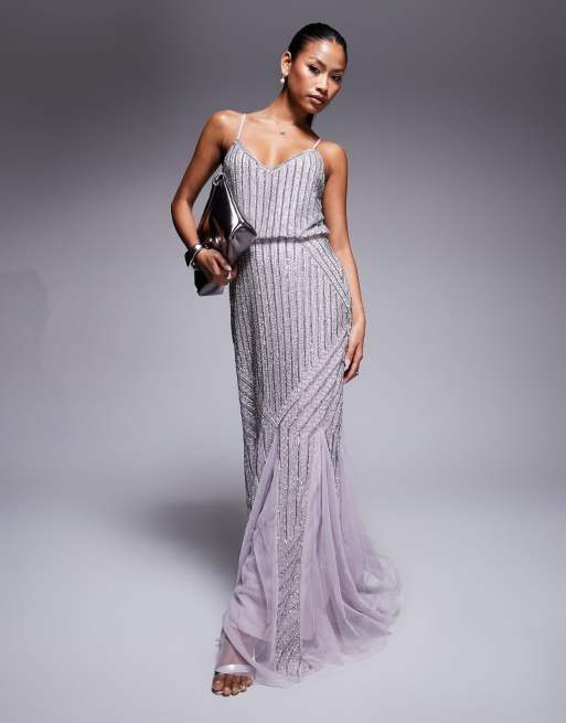 Beauut - Sharon - Lyslilla maxikjole med fiskehalesnit og pailletter