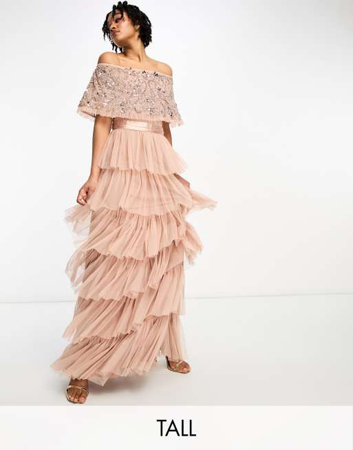 Beauut Tall - Brudepiger - Lagdelt bardot-maxikjole i lysebrun