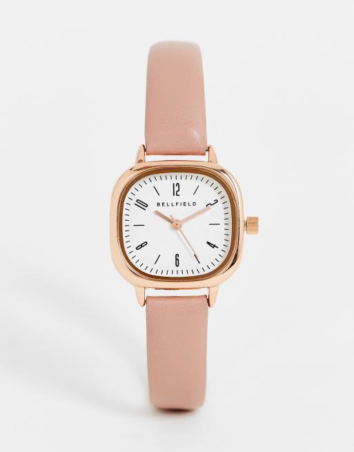 Bellfield - Rosa minimalistisk ur i læder med firkantet urskive