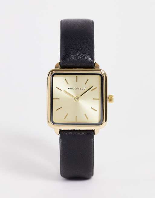 Bellfield - Sort enkelt armbåndsur med firkantet urskive