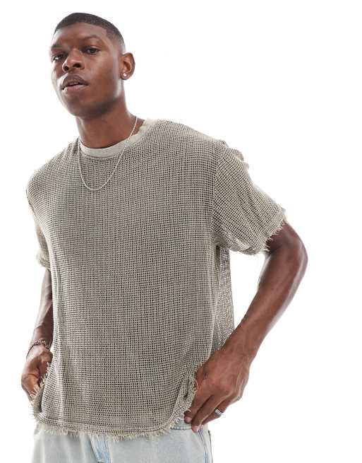 Berhska - Grå strikket T-shirt med dobbeltlag