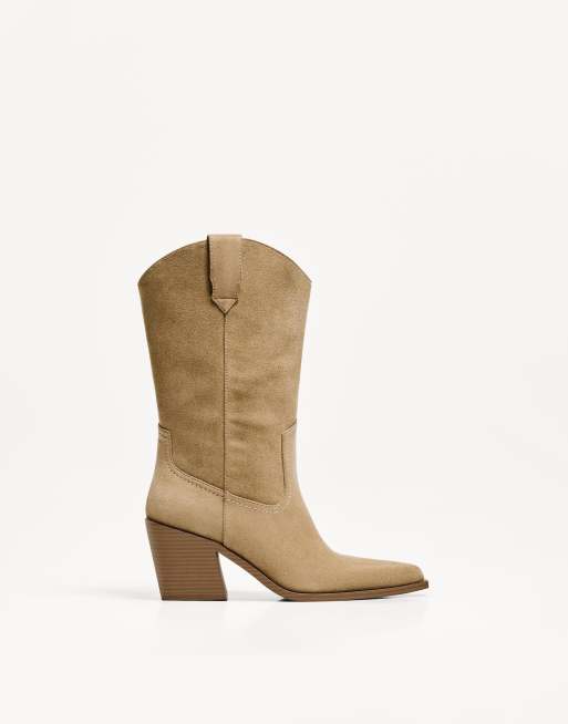 Bershka - Beige cowboystøvler med hæl