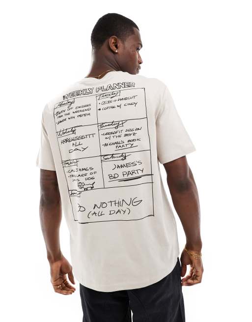 Bershka - Beige t-shirt med print på ryggen