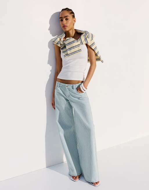 Bershka - Blå bukser med lige ben og striber