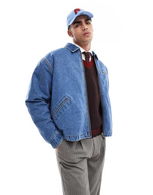 Bershka - Blå og quiltet denim-jakke med lynlås