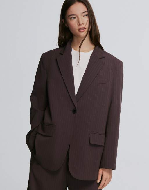 Bershka - Brun dobbeltradet blazer med striber