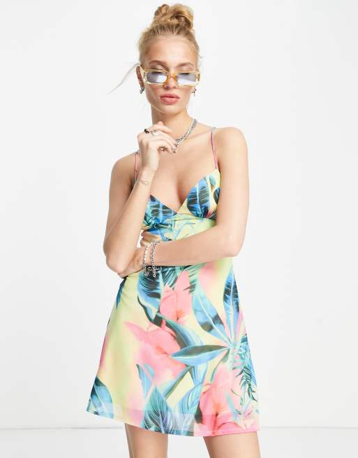 Bershka - Cami-minikjole i kraftigt tropisk print