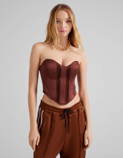 Bershka - Chokoladebrun satintop med korset-detalje