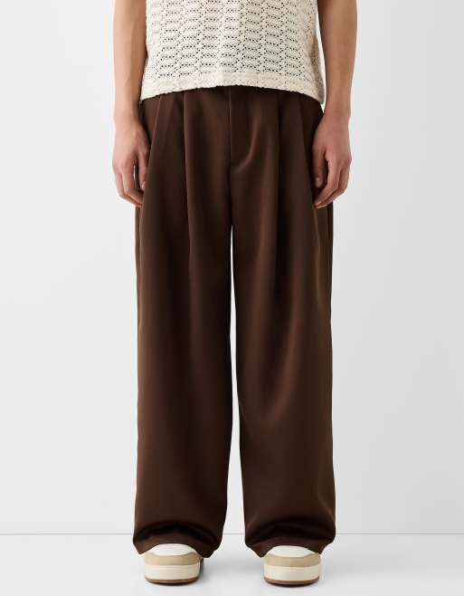 Bershka Collection - Skræddersyede bukser med vide ben i brun