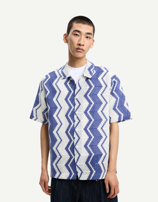 Bershka - Denimblå hæklet skjorte med korte ærmer
