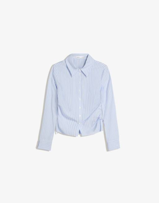 Bershka - Denimblå og tætsiddende skjorte med stofsamling i siden