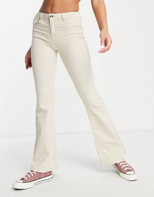 Bershka - Ecrufarvede jeans med svaj