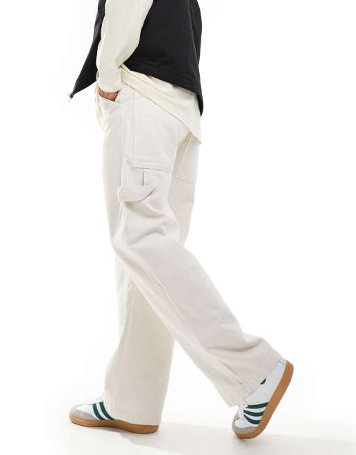 Bershka - Ecrufarvede tømrerbukser