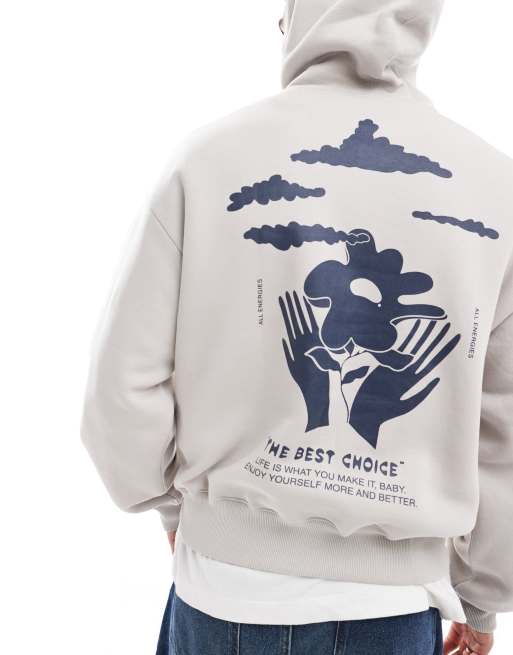 Bershka - Ecrufarvet hættetrøje med håndprint