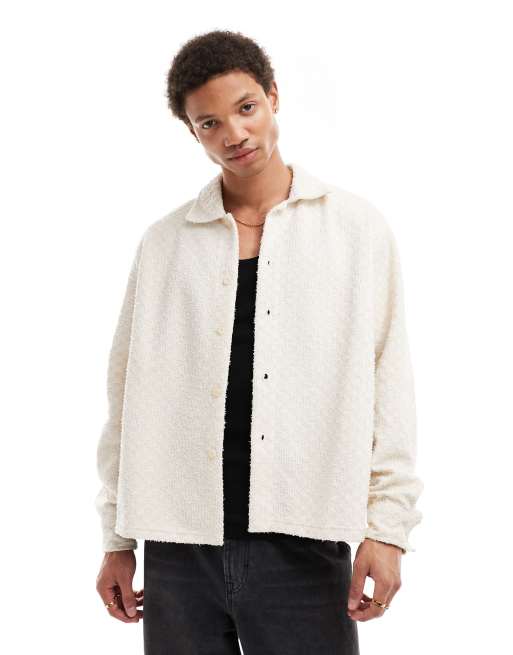 Bershka - Ecrufarvet langærmet skjorte i strik