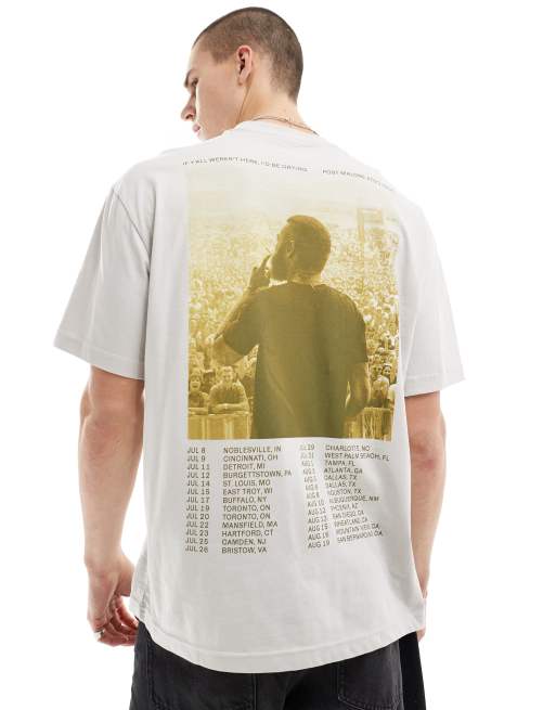 Bershka - Ecrufarvet T-shirt med Post Malone-print på ryggen