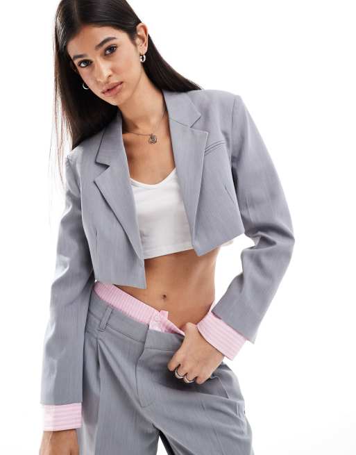 Bershka - Grå cropped blazer med stribede manchetærmer - Del af sæt