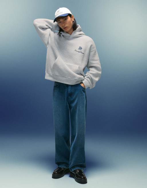 Bershka - Grå hættetrøje med print i firkantet pasform