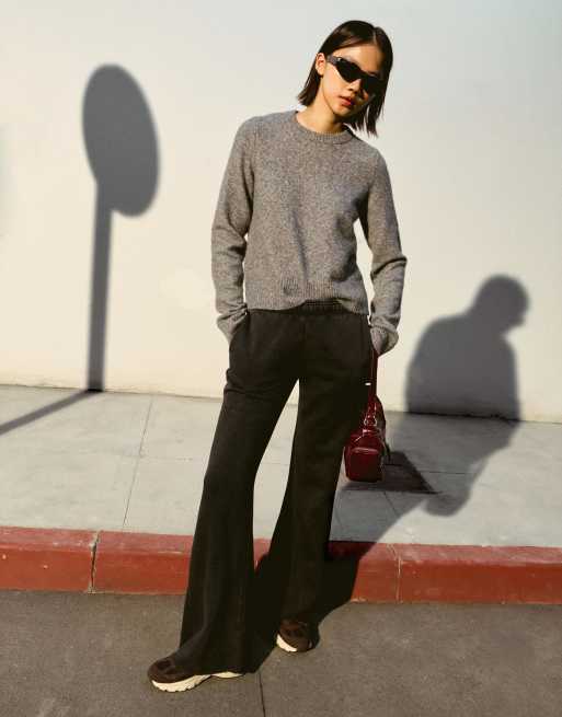 Bershka - Grå og sorte bløde bukser med svaj og flossede kanter