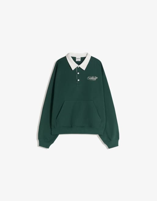 Bershka - Grøn sweater med print og polokrave
