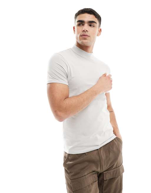 Bershka - Højhalset T-shirt i sart lysegrå