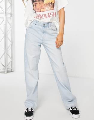 Bershka - Højtaljede Dad-jeans i afbleget vask