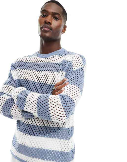 Bershka - Hæklet og langærmet trøje med blå striber