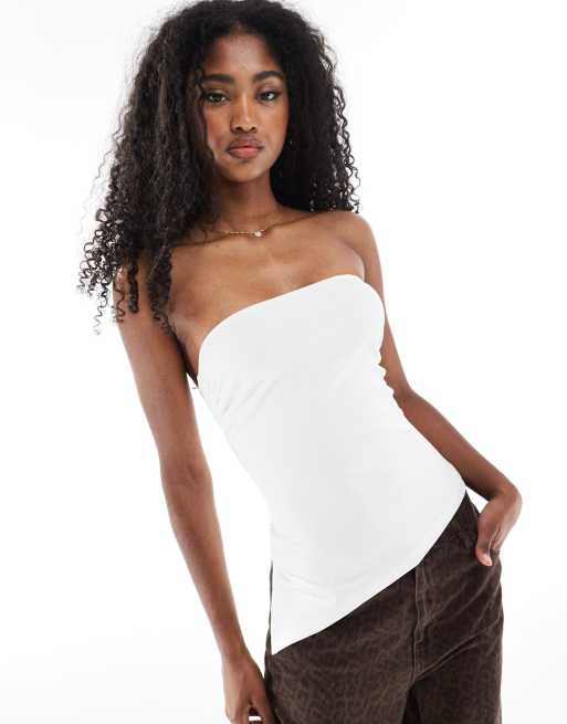 Bershka - Hvid bandeau-top med rynkedetaljer