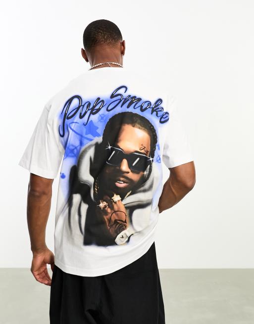 Bershka - Hvid firkantet T-shirt med "pop smoke"-tekst