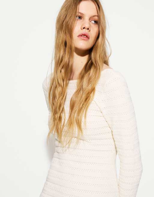 Bershka - Hvid midikjole med tekstur