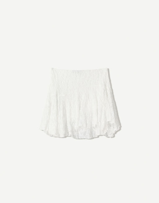 Bershka - Hvid mininederdel med flæser i blondestof