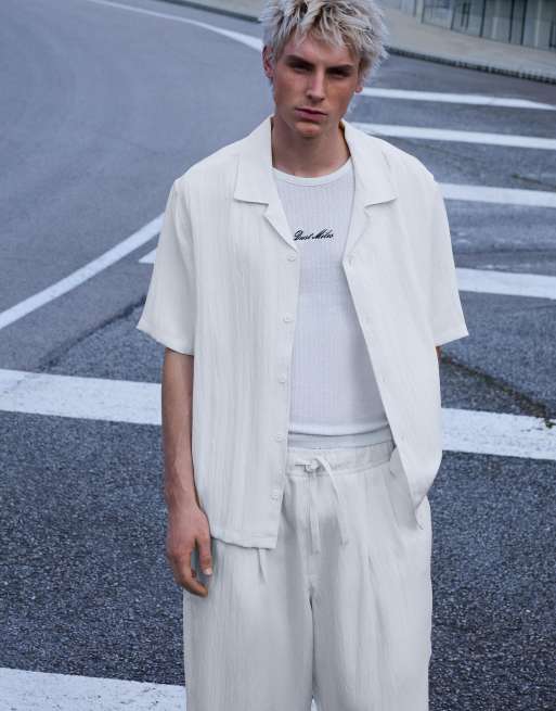 Bershka - Hvid rustik T-shirt med korte ærmer