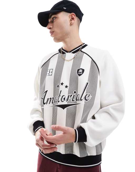 Bershka - Hvid sweatshirt med retro-sportsdesign og striber
