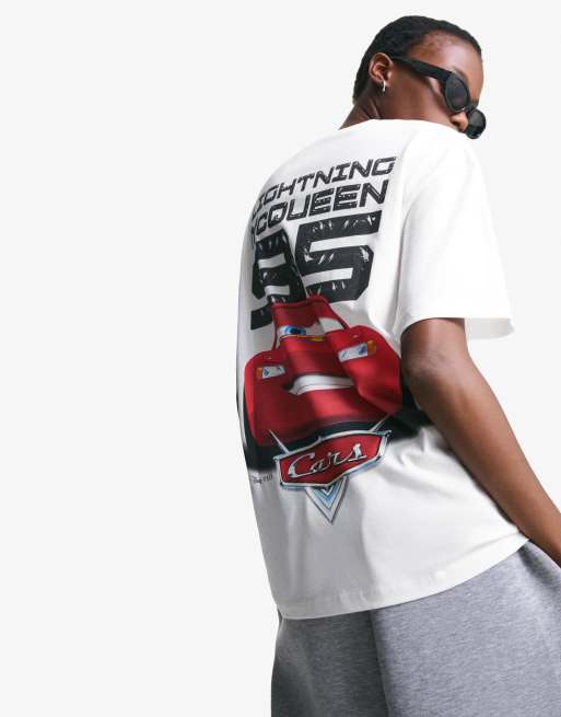 Bershka - Hvid T-shirt med korte ærmer og Biler print