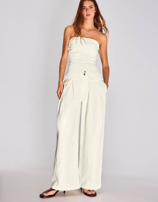 Bershka - Hvide lavtaljede jeans med brede ben og indsyede detaljer