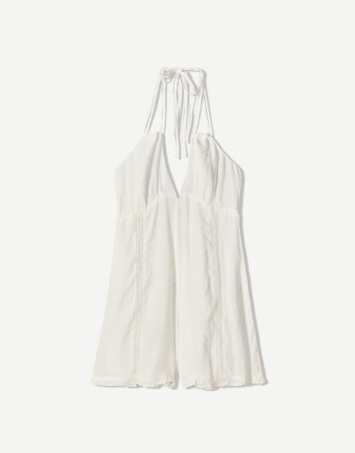Bershka - Hvidt playsuit med halterneck og bindebåndsdetalje