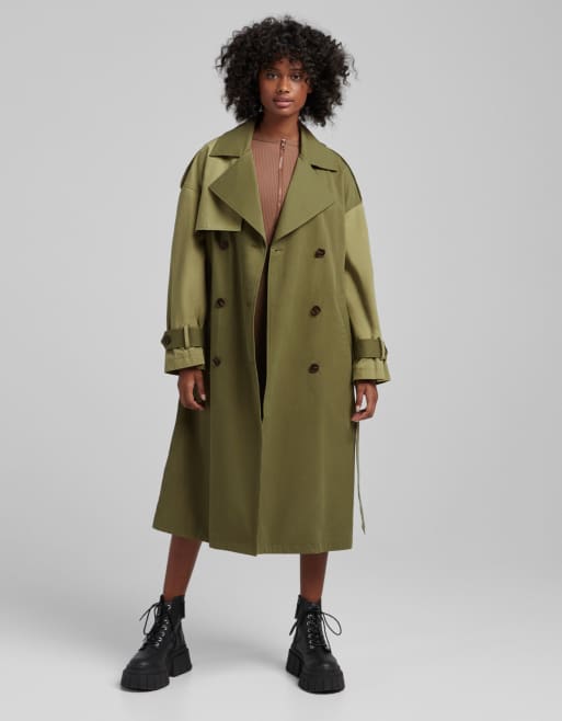 Bershka - Kakigrøn trenchcoat med detalje bagpå