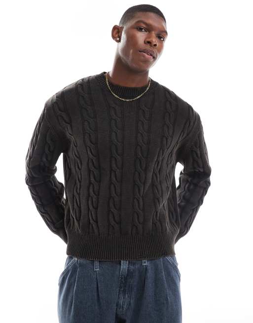 Bershka - Koksgrå trøje med sliddetaljer i kabelstrik