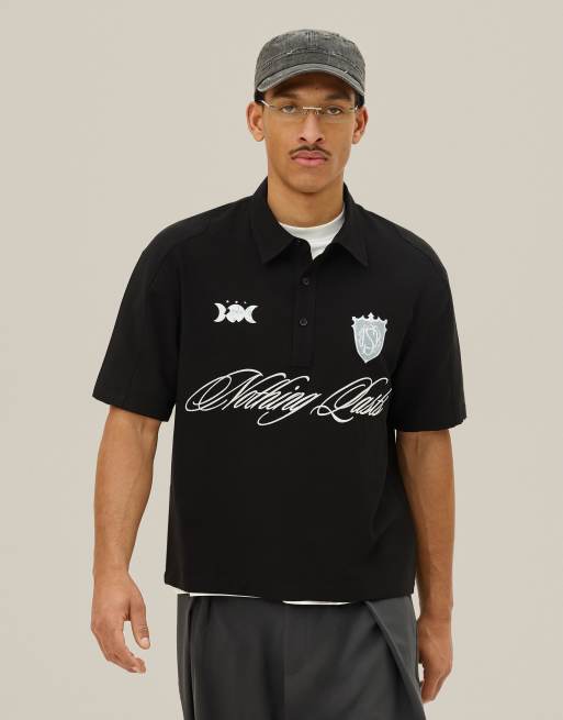 Bershka - Kortærmet sort poloskjorte med brodering