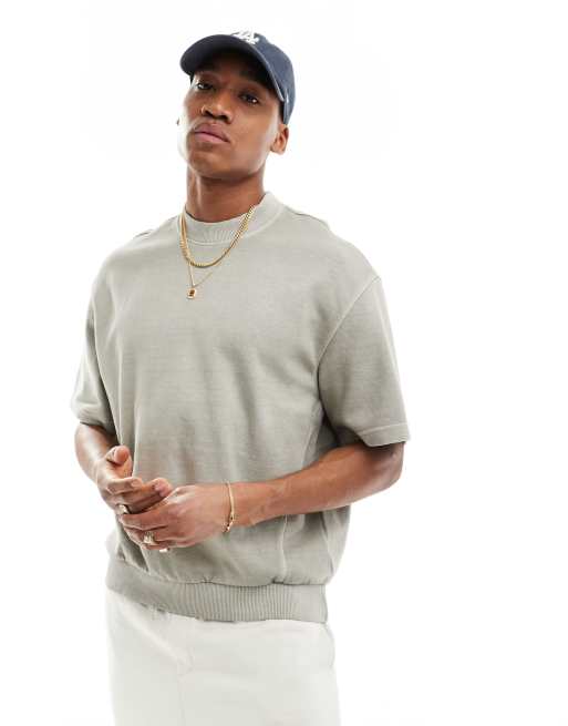 Bershka - Kraftig T-shirt med firkantet pasform i grå overdye