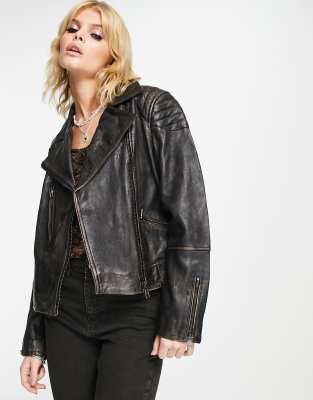 Bershka - Læderjakke i forvasket sort