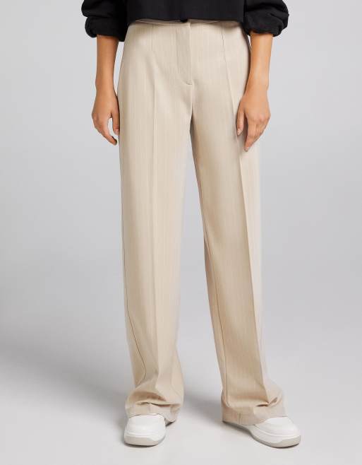Bershka - Løstsiddende, skræddersyede dad-bukser med vide ben og kamelbrune striber