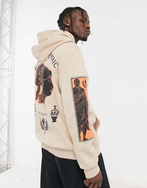 Bershka - Lysebrun hættetrøje med romersk rygprint