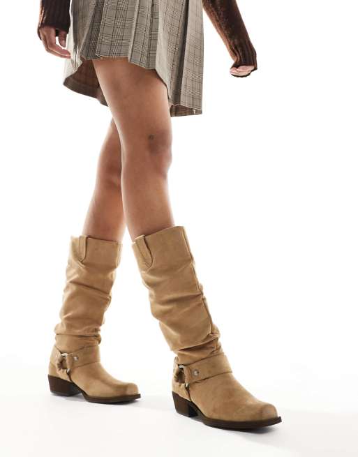 Bershka - Lysebrune læghøje støvler i imiteret ruskind